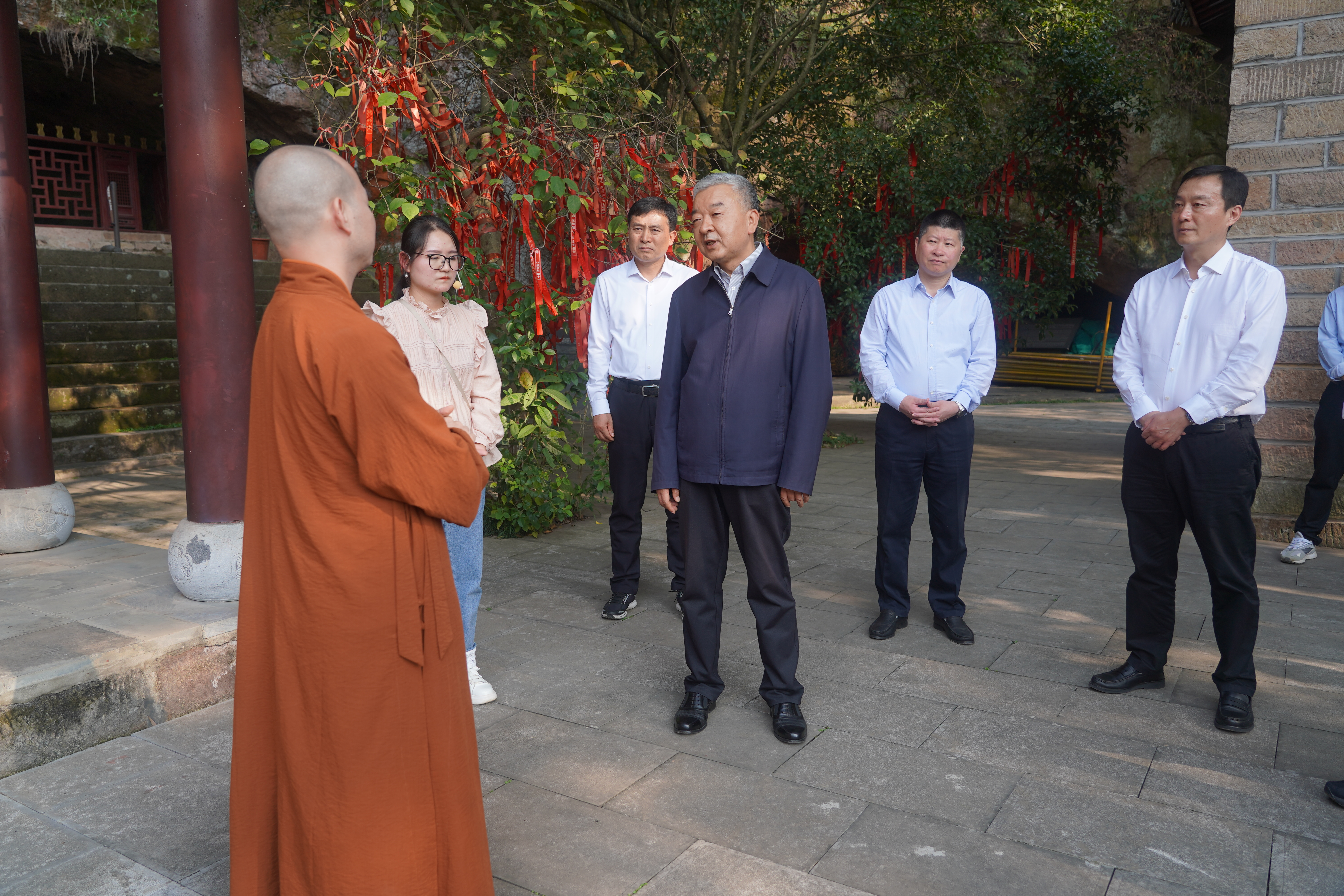 浮山位于枞阳县浮山镇,历史底蕴深厚,红色资源丰富。在会圣寺等宗教场所,详细了解“四进四有”、规范化管理情况。强调,要学深悟透习近平总书记关于宗教工作的重要论述,坚持我国宗教中国化方向,提升宗教事务管理水平,加强宗教人才队伍建设,团结引导广大信教群众爱国爱教,听党话、跟党走,结合统战工作实际为贯彻落实党的二十届三中全会精神及省委十一届七次全会部署凝心聚力,调动各方面积极因素共同建设中国式现代化美好安徽。